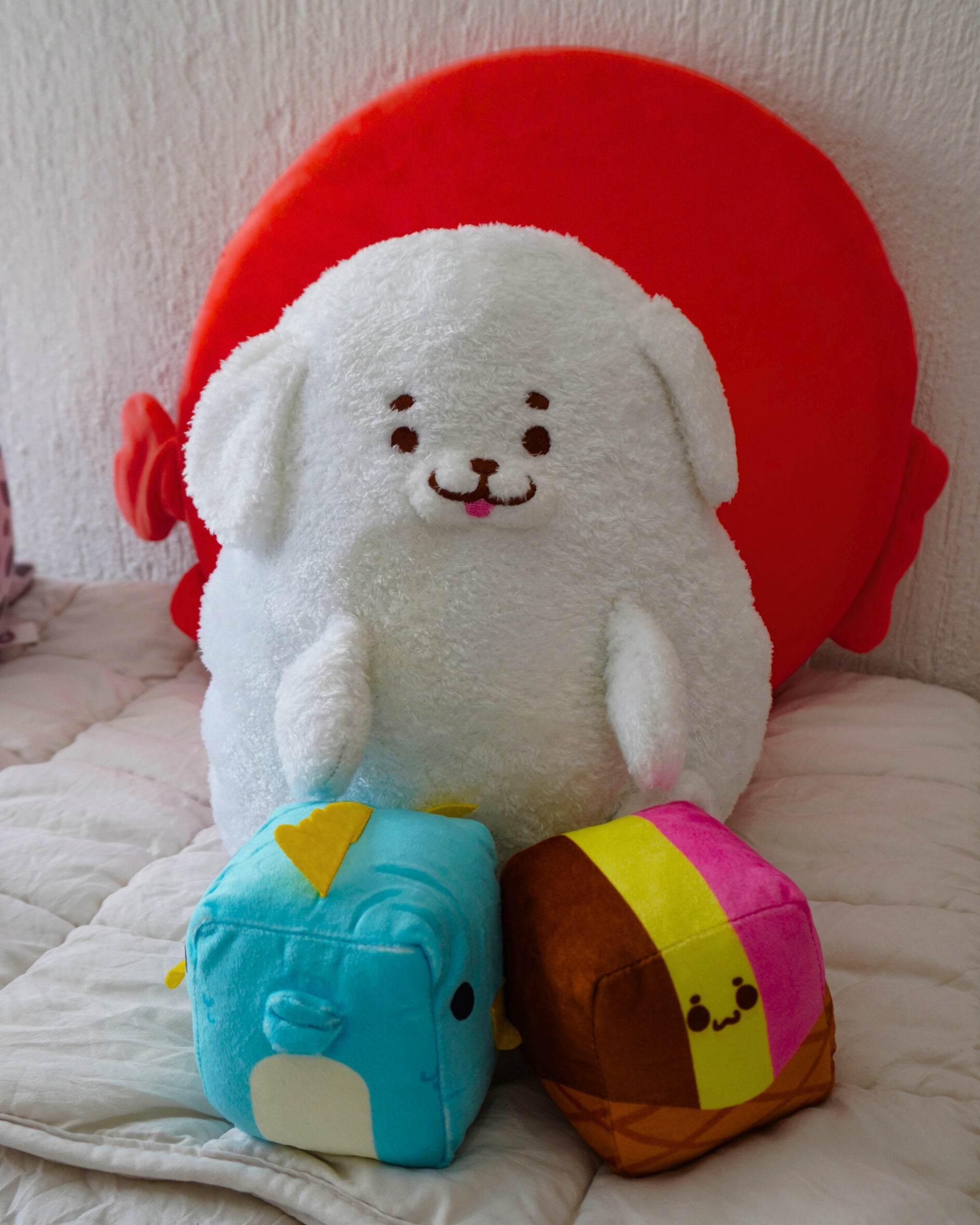 Este combo incluye un peluche Chunky grande (Chiwis) y dos mini peluches Q-Boing (Pez y Napolitano).