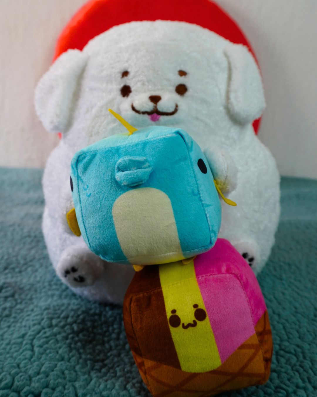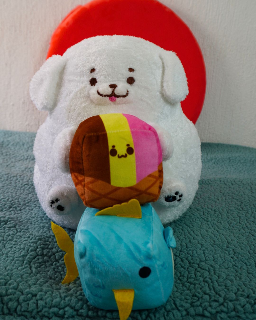 Chiwis viene con un ligero teñido de fábrica en su pelaje, apenas visible y sin impacto en su suavidad ni en lo abrazable que es. Pez es su amigo acuático, siempre burbujeante y listo para explorar, mientras que Napolitano aporta su encanto dulce y colores suaves al grupo.